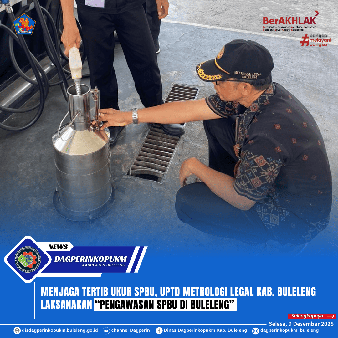 UPTD Metrologi Legal Kab. Buleleng melaksanakan kegiatan Pengawasan SPBU Tahun 2025 sebagai upaya memastikan keakuratan alat ukur dan perlindungan konsumen di wilayah Kabupaten Buleleng. Pengawasan dilakukan melalui pemeriksaan legalitas cap tanda tera dan pengujian akurasi pompa ukur BBM.