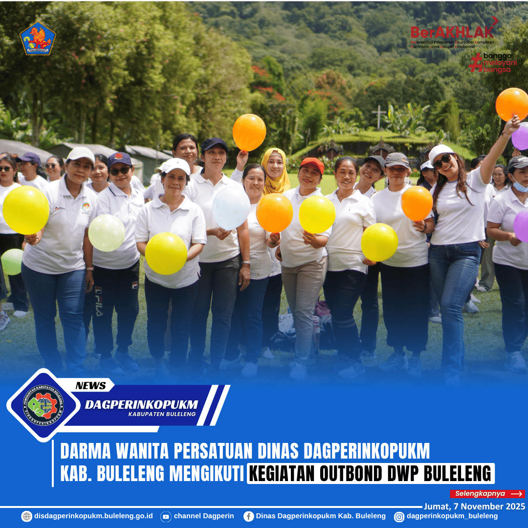 Ketua Darma Wanita Persatuan (DWP) Dinas Dagperinkopukm Kab. Buleleng Ny. Sri Sundariani Sudiarta berserta 4 orang anggota menghadiri kegiatan Outbond DWP Buleleng dalam rangka HUT DWP Ke-26. Kegiatan dilaksanakan di Wisma Nangun Kerti Pancasari, pada Jumat (7/11).