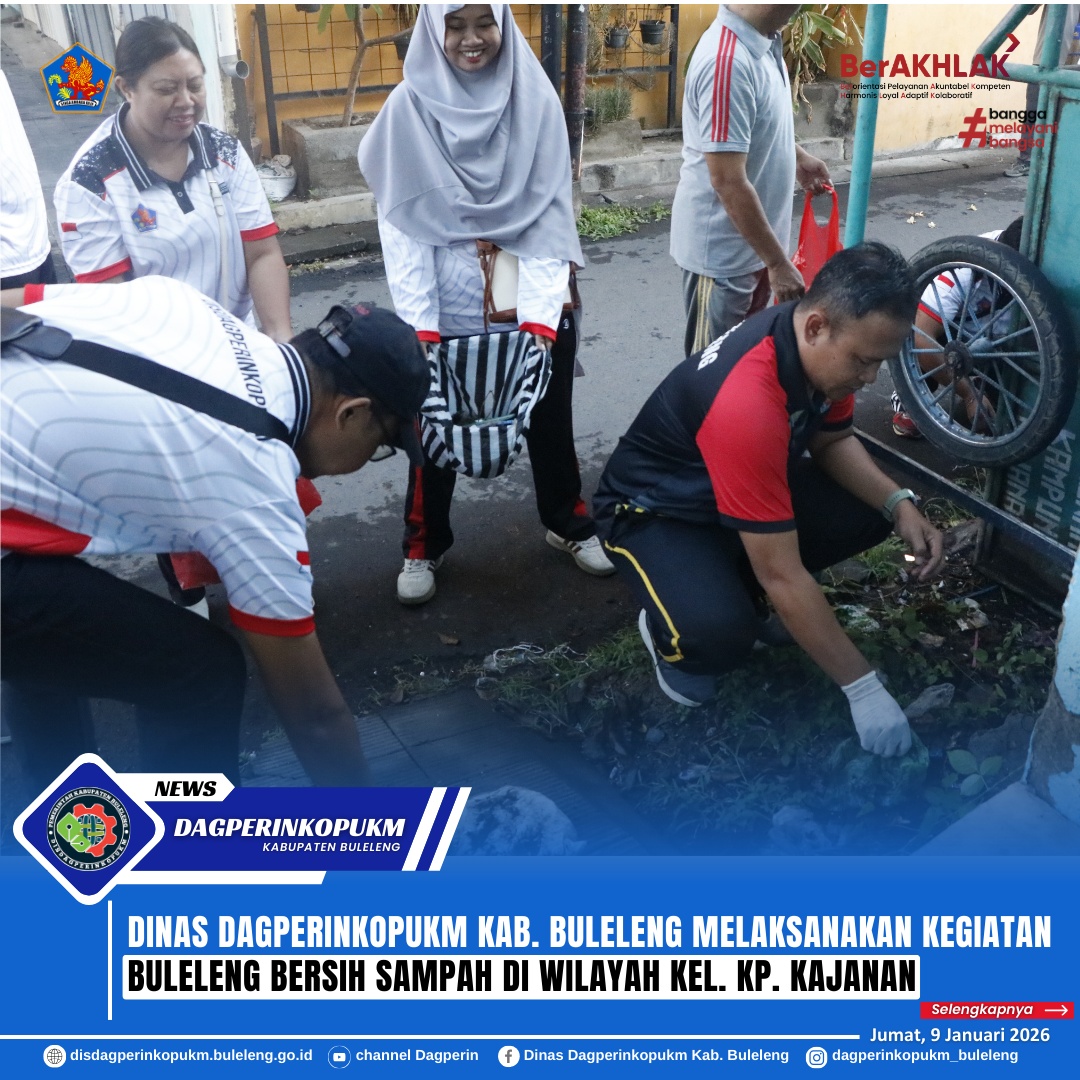 Menindak lanjuti Peraturan Gubernur Bali Nomor 97 Tahun 2018 tentang Pembatasan Timbulan Sampah Plastik Sekali Pakai, Peraturan Gubernur Bali Nomor 47 Tahun 2019 tentang Pengelolaan Sampah Berbasis Sumber dan Surat Edaran Gubernur Bali Nomor 9 Tahun 2025 tentang Gerakan Bali Bersih Sampah. Menyikapi edaran tersebut, Pemerintah Kabupaten Buleleng melalui Dinas DagperinkopUKM Kab. Buleleng melaksanaan kegiatan "Gerakan Buleleng Bersih Sampah" dari sampah plastik di wilayah KP. Kajanan, Kec. Buleleng yang dilaksanakan pada Jumat (9/1).