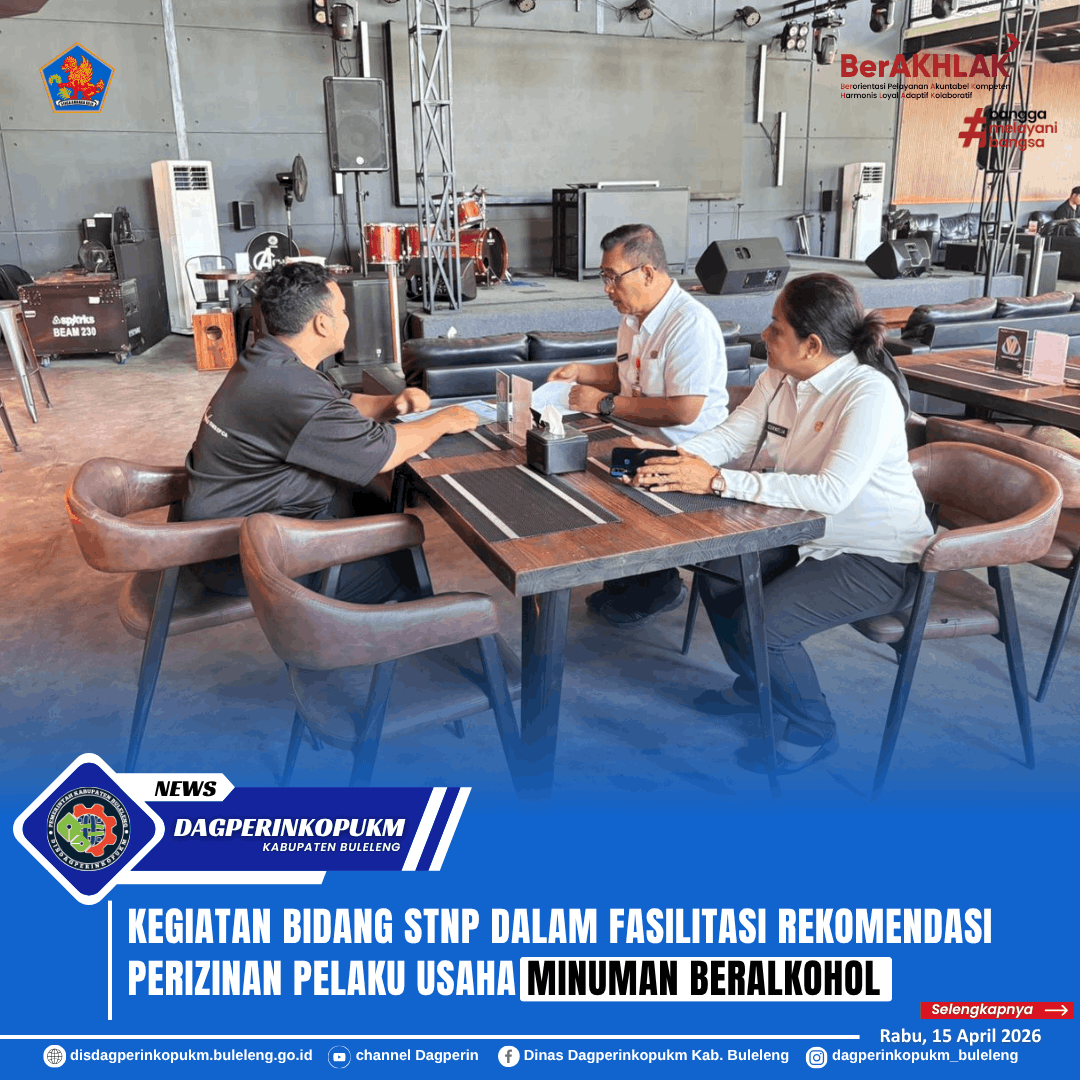 Pada Rabu, 15 April 2026, Bidang STNP melaksanakan kegiatan fasilitasi rekomendasi kepada pelaku usaha di wilayah Kabupaten Buleleng. Kegiatan ini bertujuan untuk memastikan pemenuhan persyaratan administrasi dan teknis dalam rangka penerbitan rekomendasi perizinan usaha.