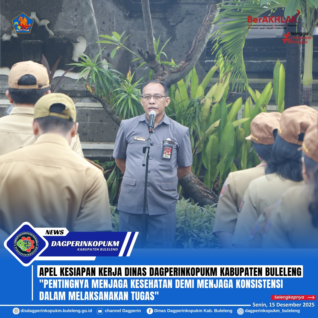 Apel Kesiapan Kerja Dinas Perdagangan, Perindustrian dan Koperasi, Usah Kecil dan Menengah (DagperinkopUKM) Kabupaten Buleleng di halaman kantor Dinas Dagperinkopukm Kabupaten Buleleng pada hari, Senin (15/12).