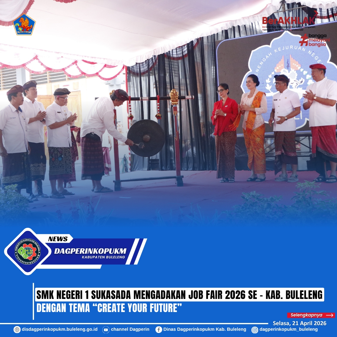 Sukasada, 21 April 2026 - Bertempat di SMK Negeri 1 Sukasada, berlangsung kegiatan Job Fair se - Kab. Buleleng pada Selasa (21/4). Dinas DagperinkopUKM Kabupaten Buleleng pada kesempatan ini diwakilkan oleh Sekretaris Dinas I Made Sudarmika menghadiri acara Job Fair dengan mengusung tema “Create Your Future".
