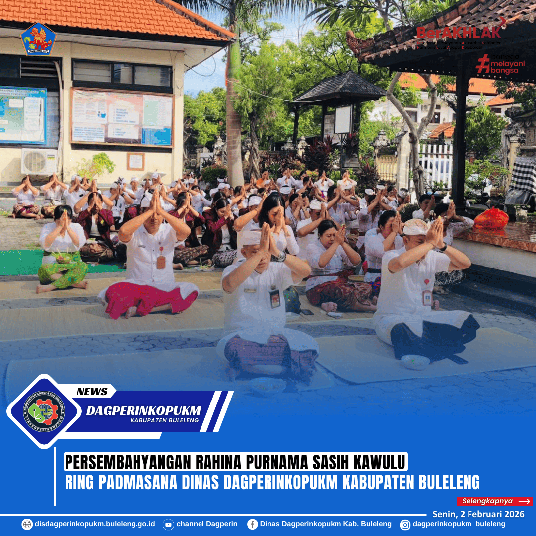 Persembahyangan Bersama Rahina Purnama Sasih Kawulu ring Padmasana Dinas Dagperinkopukm Kabupaten Buleleng, Senin (2/2).