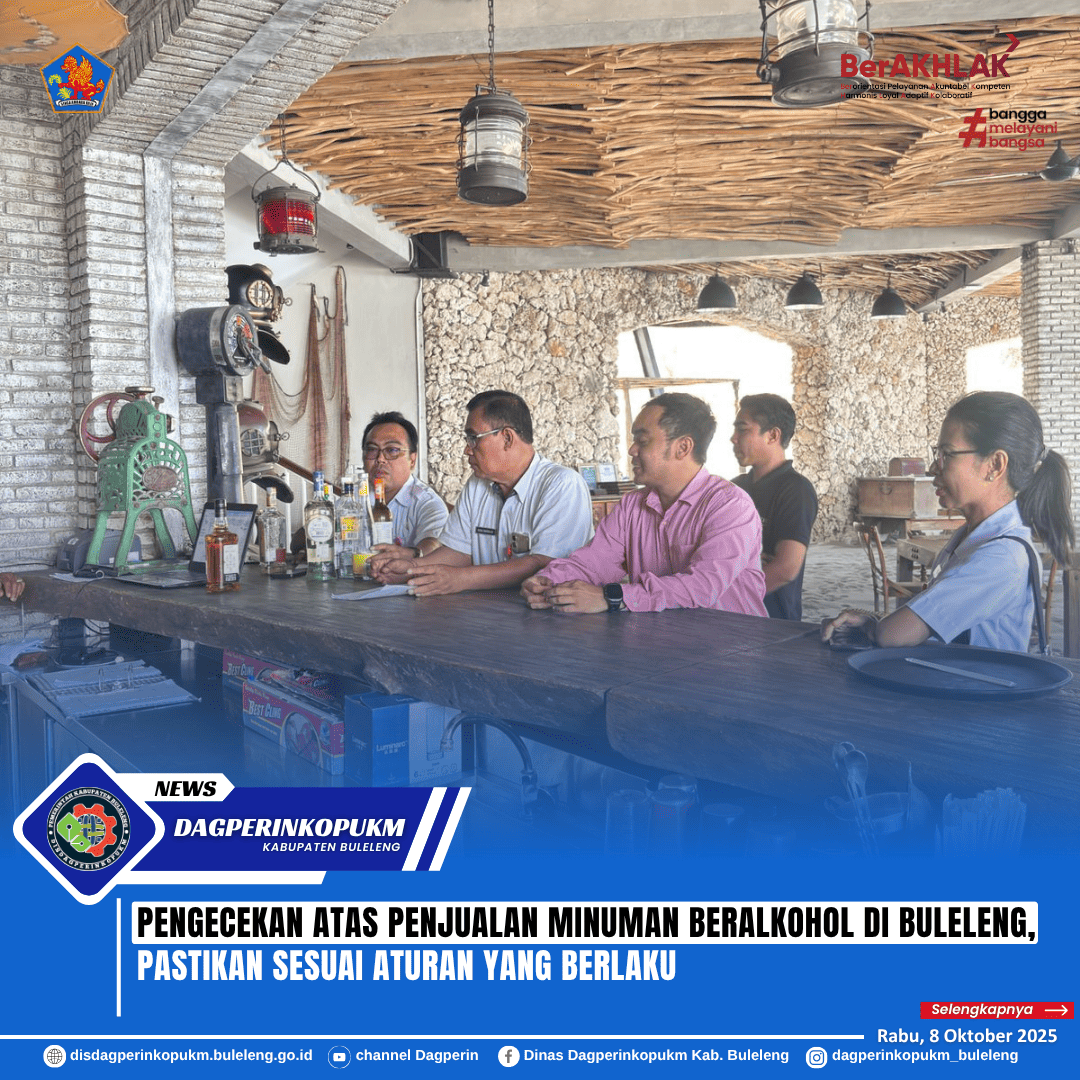 Bidang Sarana Tertib Niaga Perdagangan Dinas Perdagangan, Perindustrian dan Koperasi, Usah Kecil dan Menengah (DagperinkopUKM) Kabupaten Buleleng melaksanakan pengecekan lapangan terhadap ketersediaan dan penjualan minuman beralkohol Golongan B dan C pada hari, Rabu (8/10).