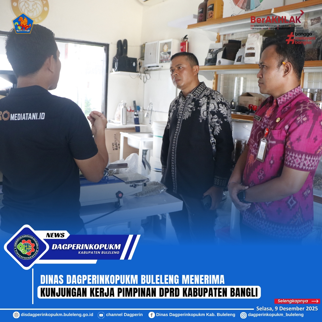 Dalam kunjungan kerjanya, Wakil Ketua II DPRD Bangli menyempatkan diri untuk mengunjungi tempat pemrosesan biji kopi sampai dengan kopi siap di nikmati di PLUT Kabupaten Buleleng, Wakil Ketua II DPRD Bangli sangat terkesan dengan proses panen dan pengolahan kopi hingga di proses oleh pelaku UMKM di bidang Kopi dan berharap kunjungan kerja ini dapat di tularkan ke seluruh petani kopi yang ada di wilayah Kabupaten Bangli khususnya Kintamani sebagai penghasil kopi terbesar di Bangli.