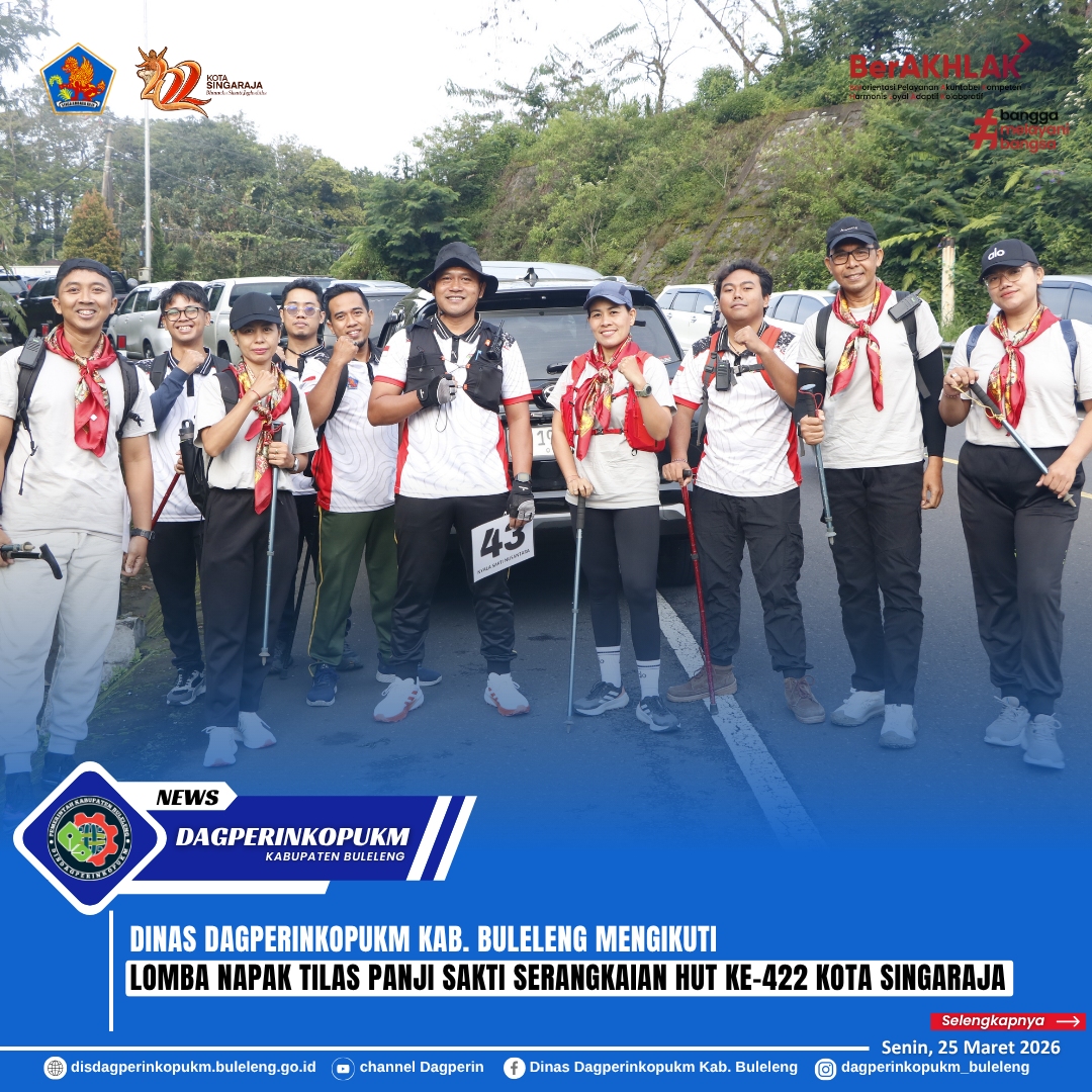 Sekretaris Dinas Perdagangan, Perindustrian, Koperasi, Usaha Kecil dan Menengah (Dagperinkopukm) Kabupaten Buleleng I Made Sudarmika menghadiri sekaligus menjadi Ketua Tim Peserta Napak Tilas Dinas Dagperinkopukm Kab. Buleleng pada kegiatan Napak Tilas Panji Sakti serangkaian HUT Kota Singaraja ke - 422 yang dilaksanakan di Pura Luhur Yeh Ketipat, Desa Wanagiri, Kecamatan Sukasada pada hari Rabu, (25/3/2026).
