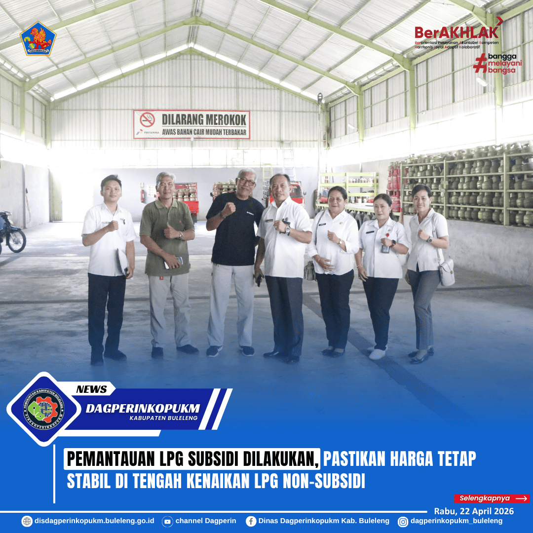 Sehubungan dengan adanya kenaikan harga LPG non-subsidi, yakni LPG 5,5 kg dan LPG 12 kg, Dinas Dagperinkopukm Kabupaten Buleleng bergerak cepat melakukan langkah antisipatif, Rabu (22/4). Upaya ini dilakukan untuk memastikan bahwa kenaikan tersebut tidak berdampak pada harga LPG subsidi 3 kg di tingkat masyarakat, khususnya bagi rumah tangga dan pelaku usaha kecil yang sangat bergantung pada ketersediaannya.