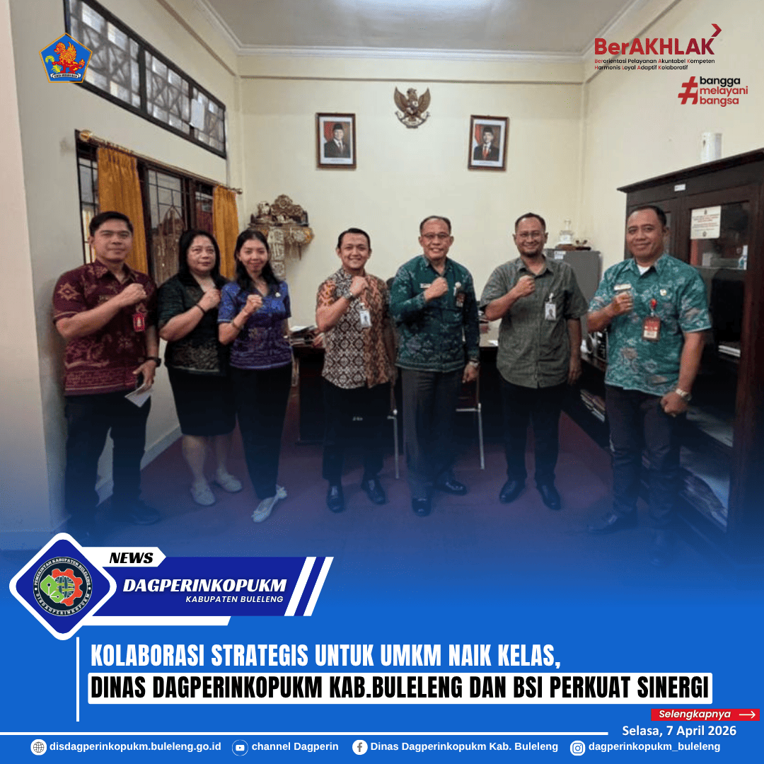 Penjajakan kerja sama antara Dinas Dagperinkopukm Kabupaten Buleleng dengan Bank Syariah Indonesia (BSI) Cabang Singaraja, menjadi langkah strategis dalam memperkuat pemberdayaan pelaku UMKM di Kabupaten Buleleng. Kerja sama ini diarahkan untuk meningkatkan kemandirian pelaku usaha melalui edukasi keuangan, khususnya terkait investasi emas serta akses pembiayaan melalui Kredit Usaha Rakyat (KUR) berbasis syariah.
