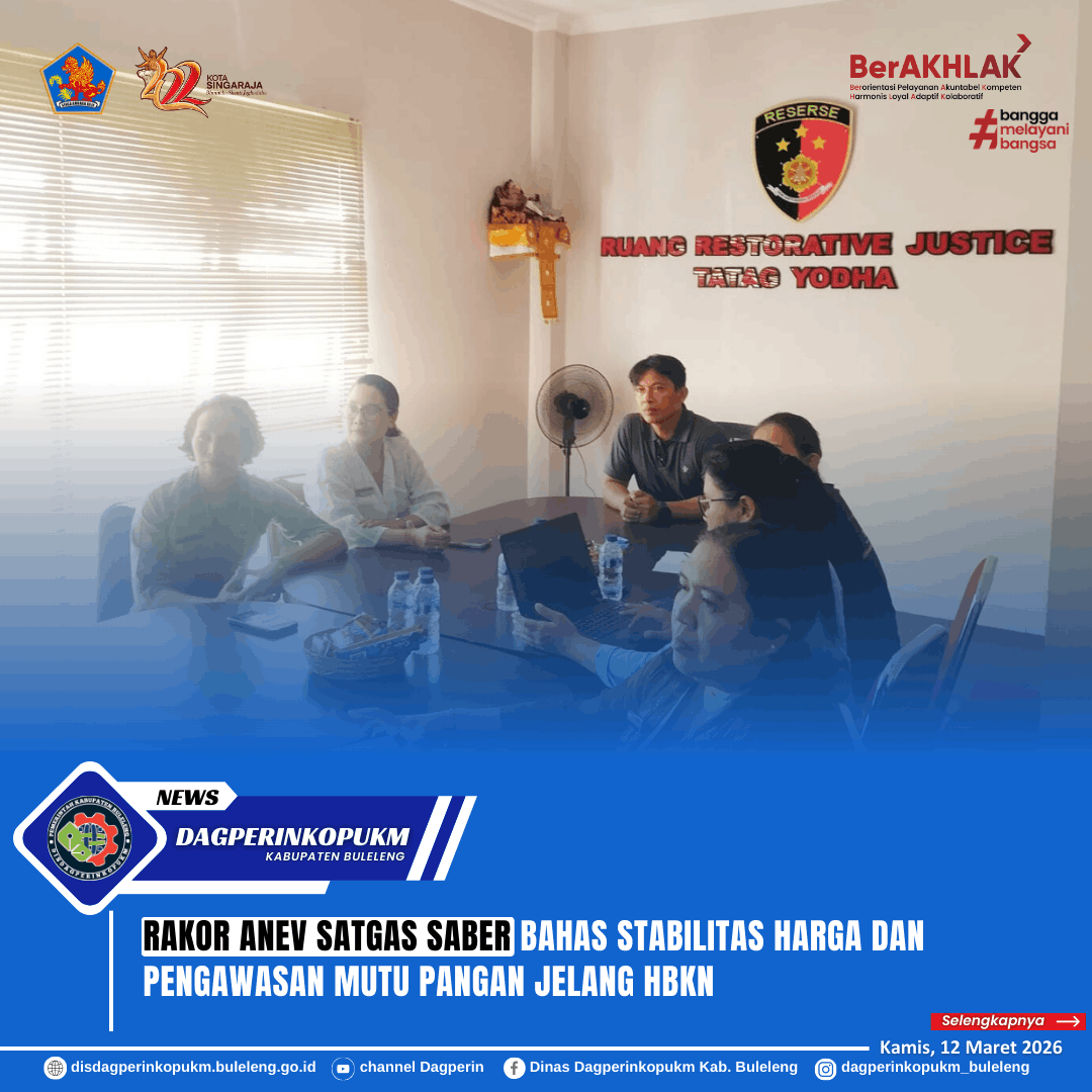 Pengawas Perdagangan Ahli Muda Ketut Sri Kertya Dewi, SE meghadiri Rapat Koordinasi dan Analisis Evaluasi (Rakor Anev) Mingguan Satgas Saber yang dilaksanakan pada Kamis, 12 Maret 2026, bertempat di Ruang Rapat Satreskrim Polres Buleleng.