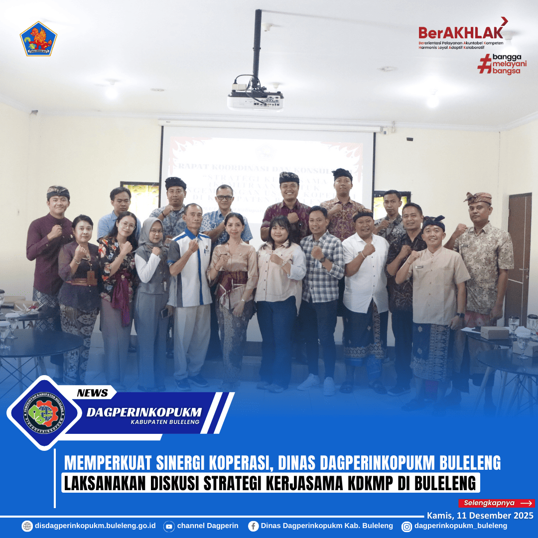 Dalam rangka mendukung peningkatan tata kelola yang profesional dan akselerasi pengembangan unit usaha bagi Koperasi di Kabupaten Buleleng, Dinas Dagperinkopukm Kab. Buleleng melaksanakan Koordinasi dan Konsultasi Strategi Kerjasama (Kemitraan) untuk Pengembangan Unit Usaha Koperasi di Kabupaten Buleleng. Rakor dilaksanakan di Gedung Pusat Layanan Usaha Terpadu (PLUT) KUMKM Buleleng, Kamis (11/12).