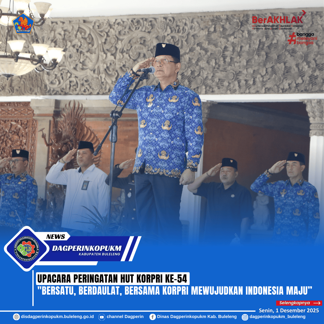 Bupati Buleleng I Nyoman Sutjidra pada kesempatan ini bertugas sebagai Inspektur Upacara Peringatan HUT Korpri ke-54. Mengusung tema nasional “Bersatu, Berdaulat, Bersama Korpri Mewujudkan Indonesia Maju”.Tema ini mencerminkan tekad Aparatur Sipil Negara (ASN) untuk tetap menjaga persatuan, solid, berintegritas, dan mandiri dalam pengabdian, menjadi kekuatan moral dan profesional, menjadikan KORPRI sebagai kekuatan pemersatu dan penggerak birokrasi demi terwujudnya Indonesia yang maju, adil, berdaya saing, dan berkeadilan, dengan semangat memperkuat solidaritas dan persatuan di antara anggota KORPRI.