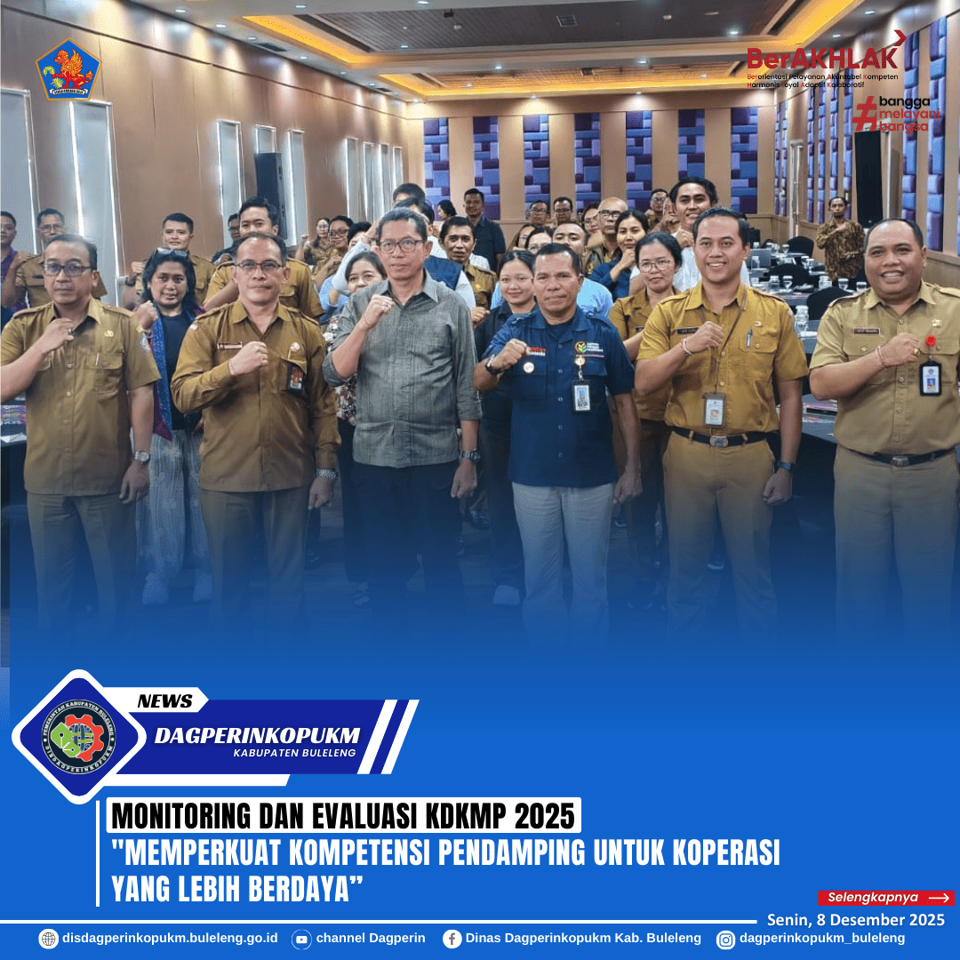 Kepala Dinas Dagperinkopukm Kabupaten Buleleng Drs. Dewa Made Sudiarta, M.Si hadir pada acara tersebut bersama Fungsional Pengawas Koperasi Hadi Setiadi, Project Management Officer (PMO) Buleleng serta staf teknis. Kegiatan ini bertujuan memastikan pendamping KDKMP memiliki kapasitas yang memadai dalam melakukan pembinaan dan pelayanan kepada koperasi binaan di wilayah masing-masing.