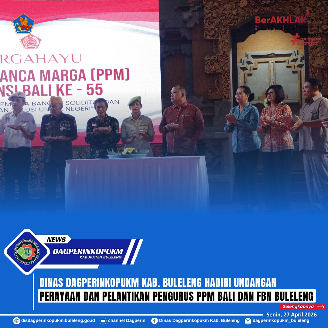 Singaraja, 27 April 2026, Perayaan semangat kebangsaan mewarnai Kabupaten Buleleng. Sekretaris Dinas Dagperinkopukm Kab. Buleleng I Made Sudarmika menghadiri undangan Perayaan dan Pelantikan Pengurus PPM Bali dan FBN Buleleng bertempat di Gedung Kesenian Gde Manik Singaraja, pada Senin (27/4).