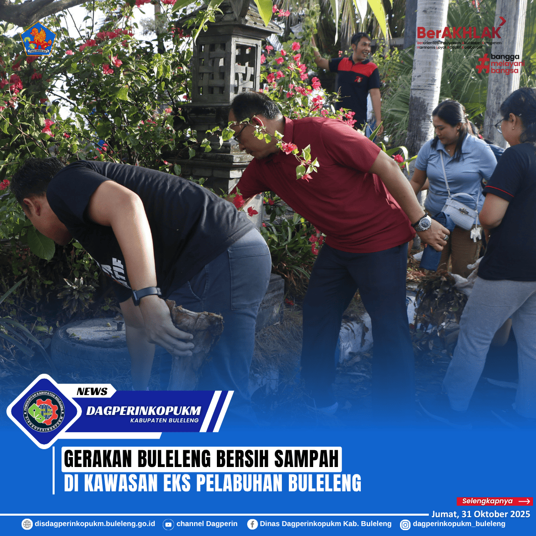 Menindak lanjuti Peraturan Gubernur Bali Nomor 97 Tahun 2018 tentang Pembatasan Timbulan Sampah Plastik Sekali Pakai, Peraturan Gubernur Bali Nomor 47 Tahun 2019 tentang Pengelolaan Sampah Berbasis Sumber dan Surat Edaran Gubernur Bali Nomor 9 Tahun 2025 tentang Gerakan Bali Bersih Sampah. Menyikapi edaran tersebut, Pemerintah Kabupaten Buleleng memerintahkan seluruh OPD dan BUMD Kabupaten Buleleng untuk melaksanaan kegiatan "Gerakan Buleleng Bersih Sampah". Dinas Perdagangan, Perindustrian dan Koperasi, Usah Kecil dan Menengah (DagperinkopUKM) Kabupaten Buleleng ikut serta pada kegiatan Gerakan Buleleng Bersih Sampah yang dilaksanakan di kawasan Eks Pelabuhan Buleleng, pada Jumat (31/10).